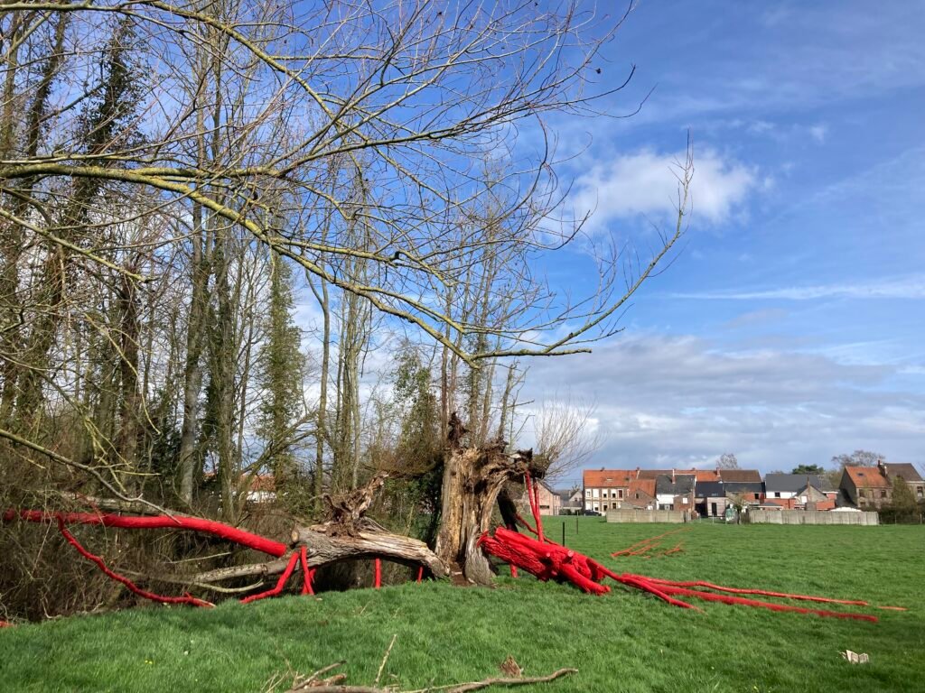 Cette installation très singulière c’est réalisée au printemps 2023 sur invitation du centre culturel Arrêt 59 de Peruwelz (Be).
